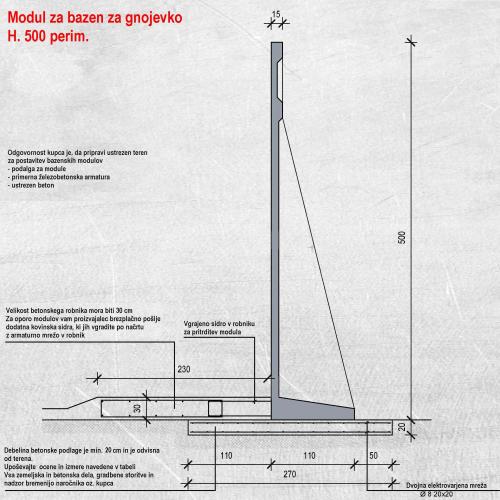 Hitro montažni bazeni za gnojevko (jama za gnojevko op.p.) sestavljeni na prej pripravljeni betonski plošči iz betonskih modulov z višino od 320 do 500 cm.