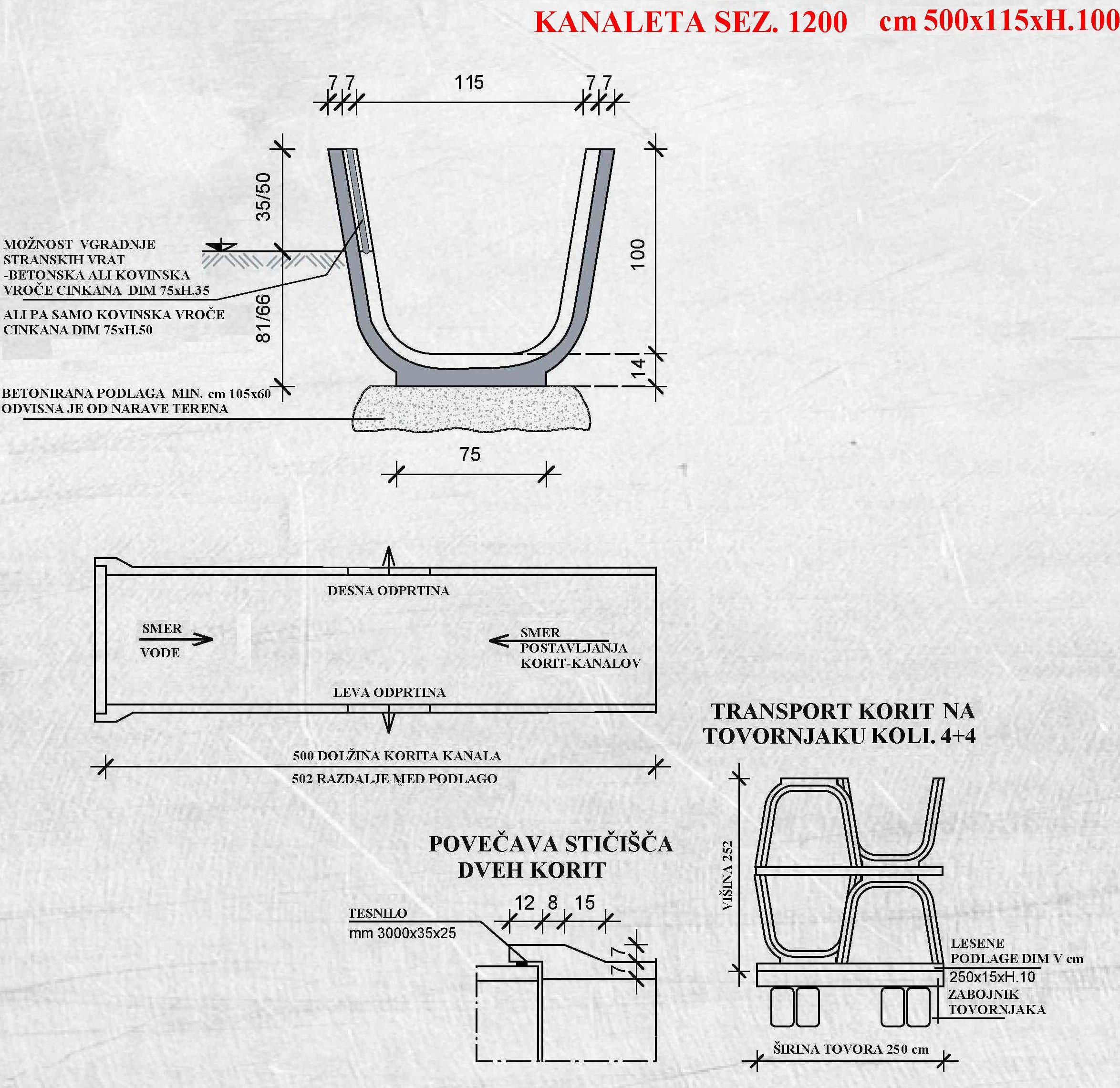 - specializirano osebje za izdelavo, prevoz in postavljanje korit kanalov