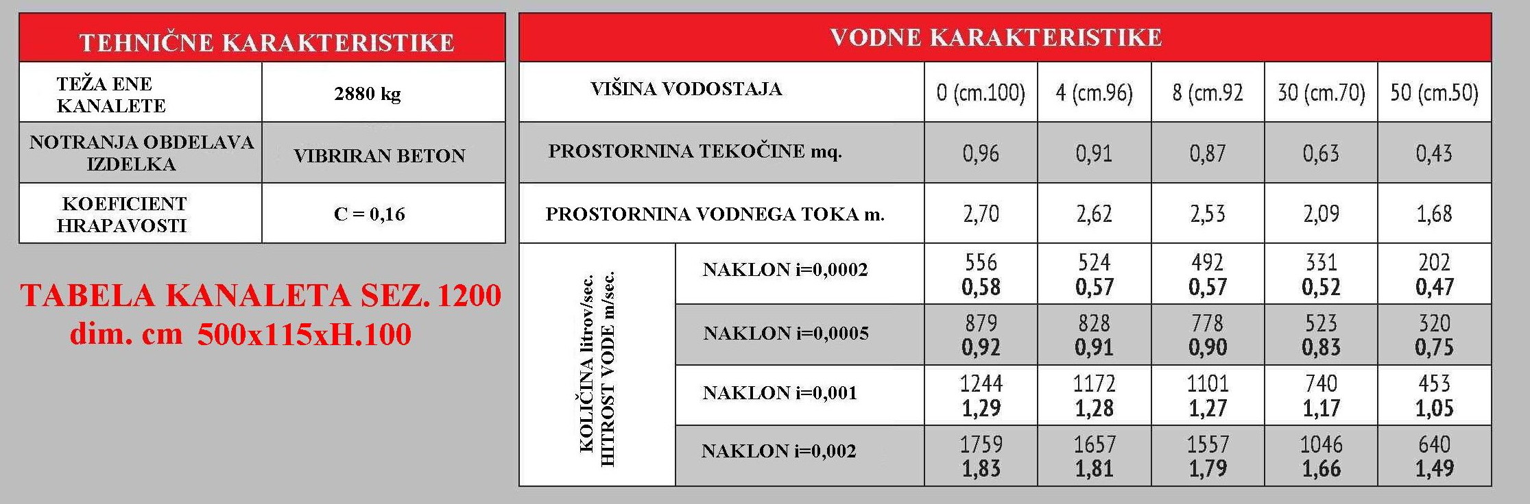 - pretoki in značilnosti se razlikujejo glede na velikost betonskih kanalet in padec kanalov