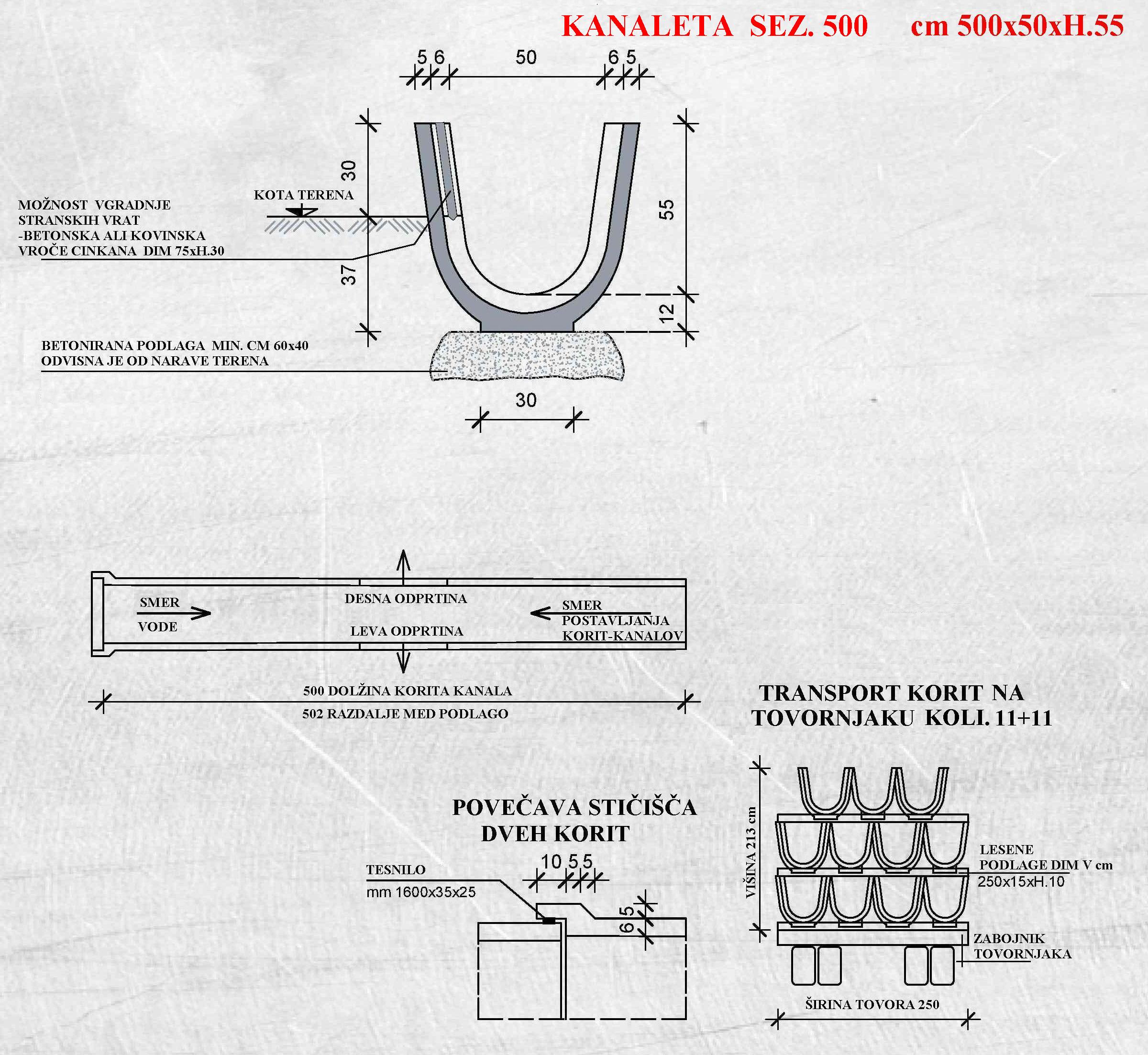 - specializirano osebje za izdelavo, prevoz in postavljanje korit kanalov