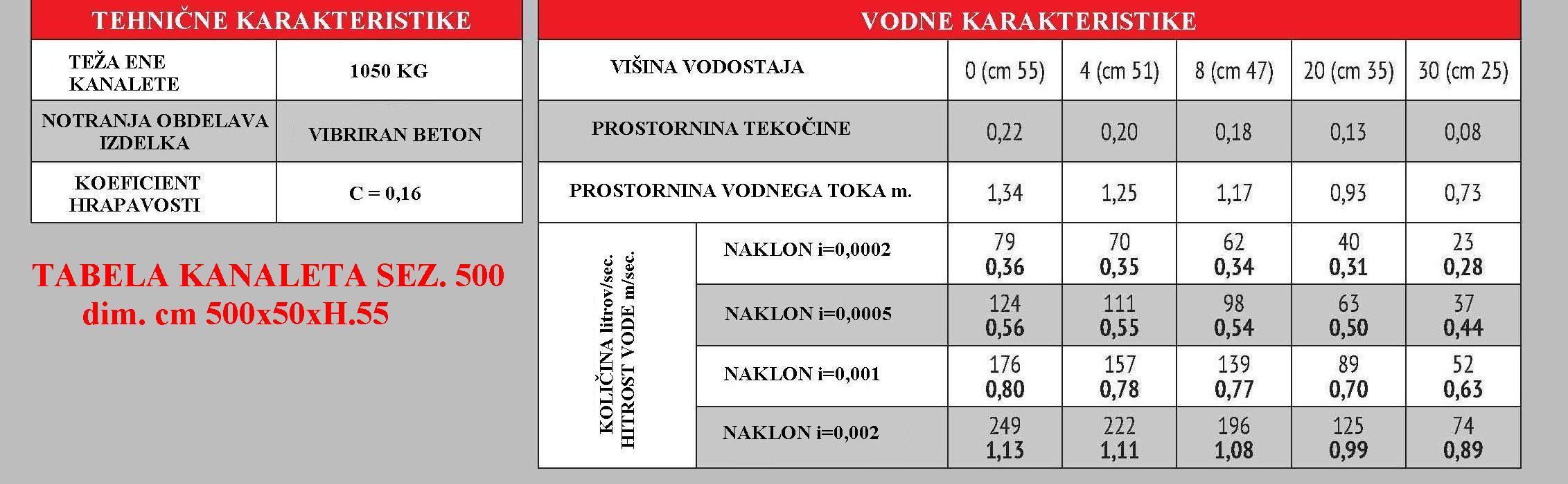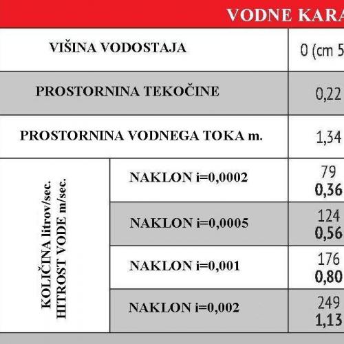 - pretoki in značilnosti se razlikujejo glede na velikost betonskih kanalet in padec kanalov