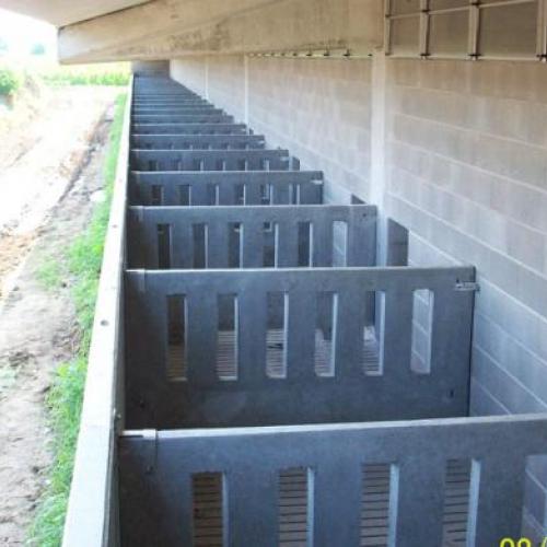 - Podporni nosilec za rešetke in korito ter pregrado ter podporni nosilec za rešetke in pregrado ustavrajata nov cenejši ter hitrejši sistem izgradnje. Možnost ločevanja gnojevke po čredah, če so razdeljene v več sektorjev. Fleksibilne predelne stene dajejo možnost večje prilagodljivosti živalim kot pa togi tradicionalni sistemi.