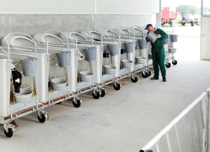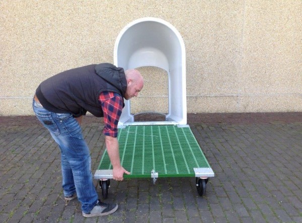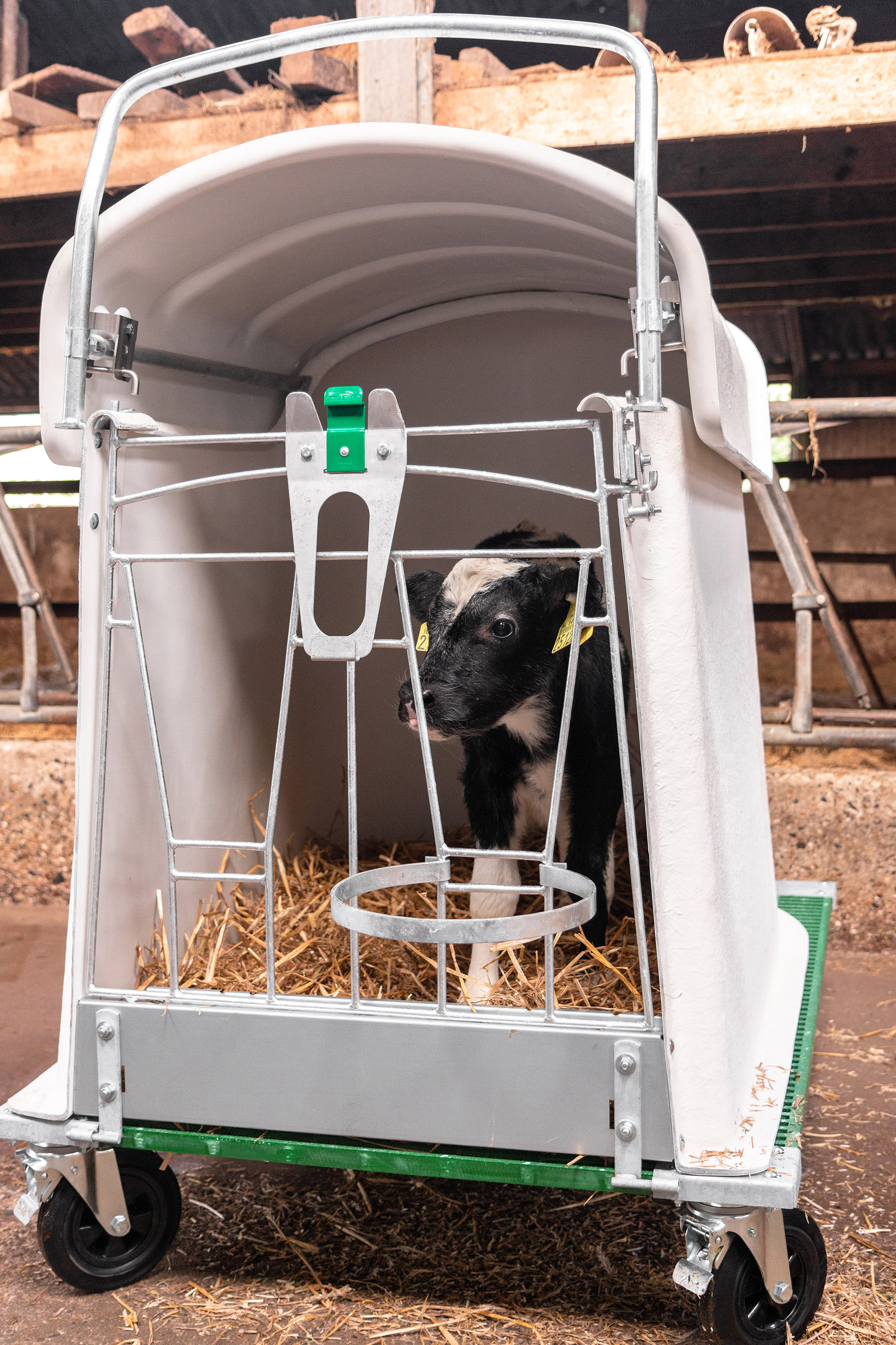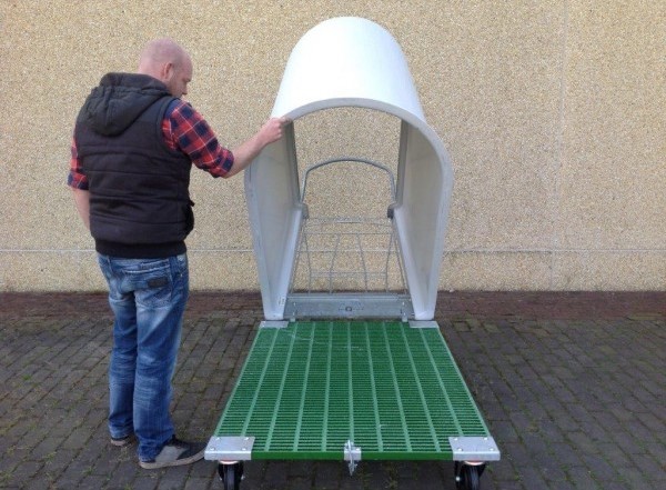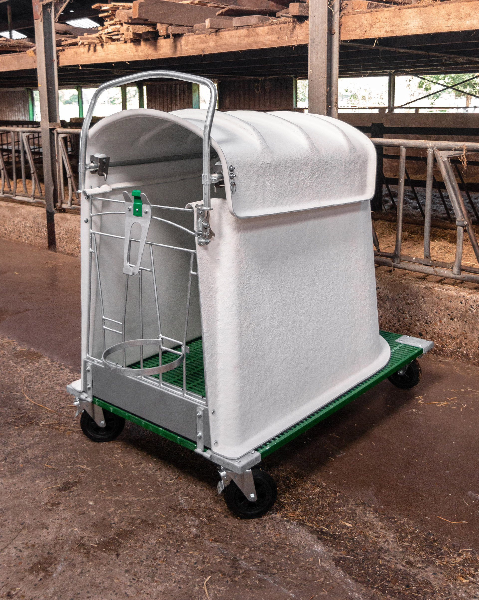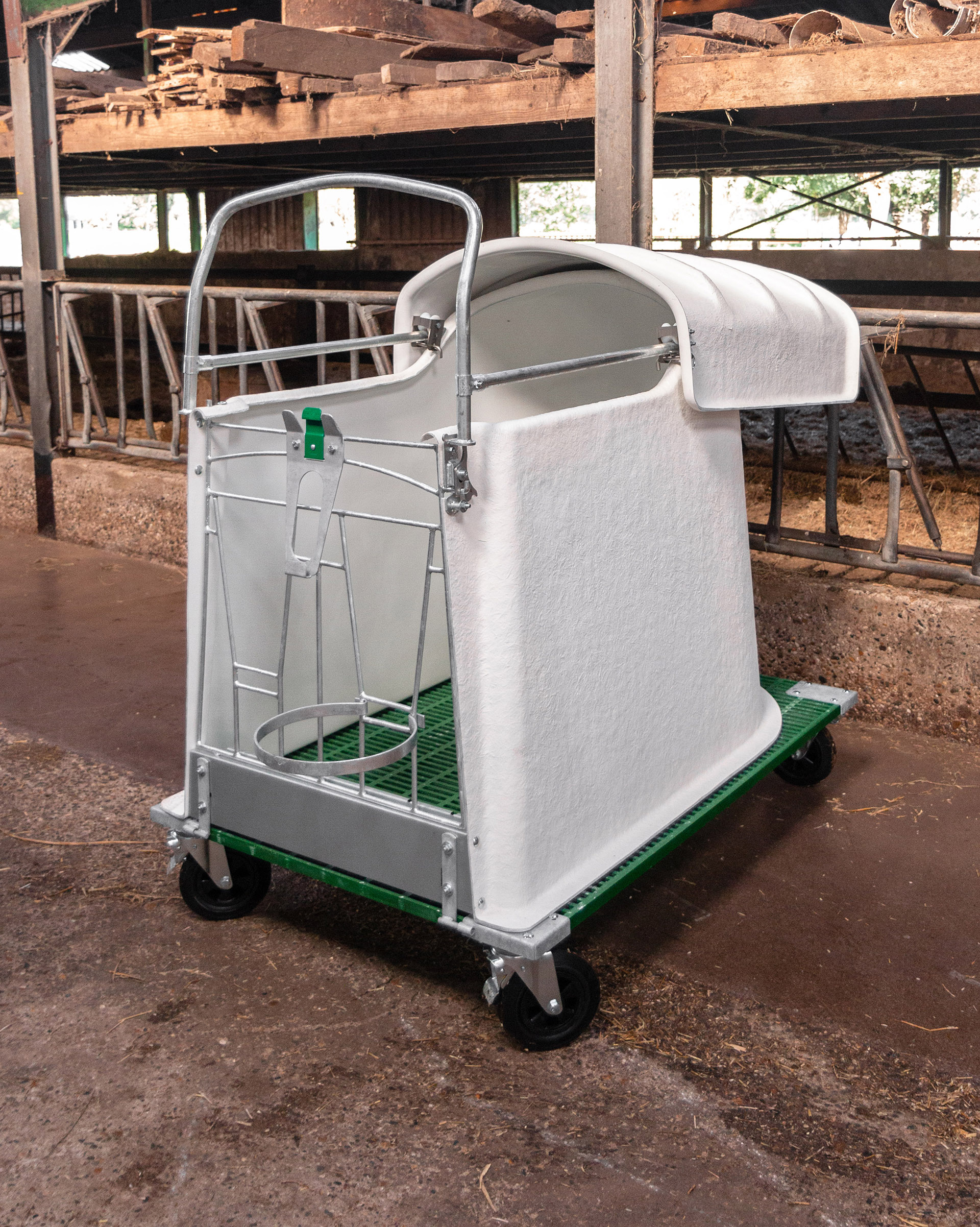 Dvojni odprt iglu na kolesih - vključuje dva igluja s pragom, sprednjo ograjo in nosilcem za vedro na rešetki.